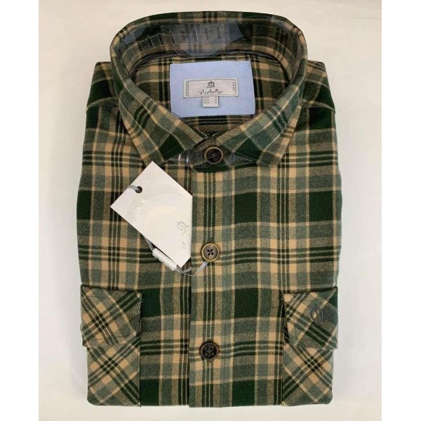Camisa manga larga cuadros en tonos verde botella, verde kaki y arena, de la firma El Caballo. LLeva dos bolsillos con solapa y botón. El logo va...