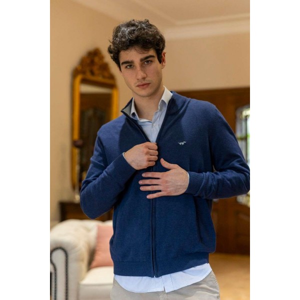 Chaqueta punto cremallera oculta, cuello semicisne, de la firma Gilbert Teckel, en verde musgo, con logo e interor cuello combinados a contraste...