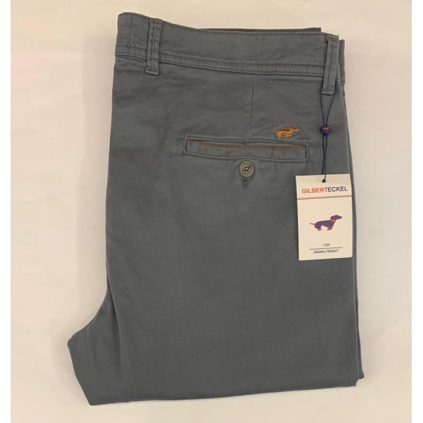 Pantalón chino de la firma Gilbert Teckel, con dos bolsillos parte trasera con botón. Llleva vivos en bolsillos traseros y logo combiandos a...