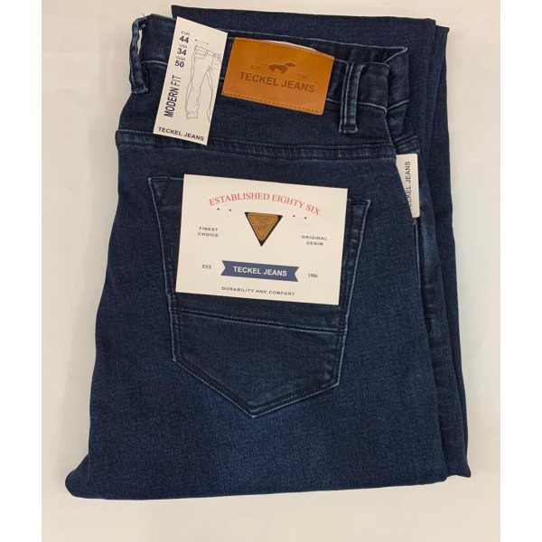 Pantalón vaquero de la firma Gilbert Teckel, modern fit, original denin, en color azul oscuro lavado desgastado. Lleva cosidos a tono y logo...