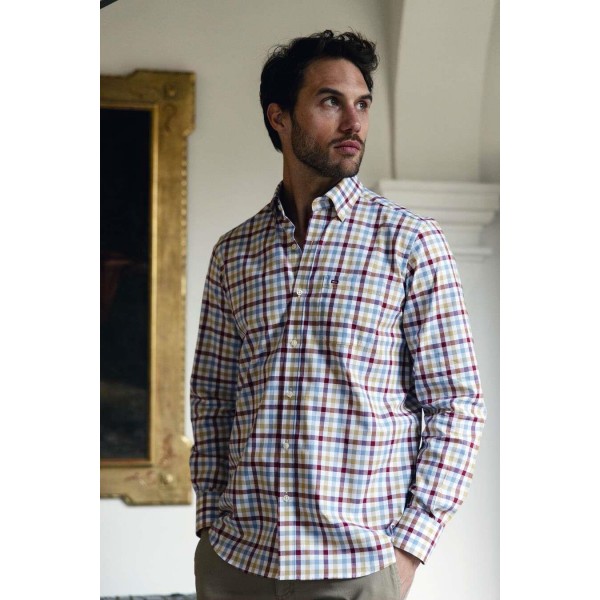 Camisa manga larga Carlos Cordoba, regular fit, cuadros en tonos granate, azul celeste, blanco roto y arena. Lleva logo en bolsillo combinado a...