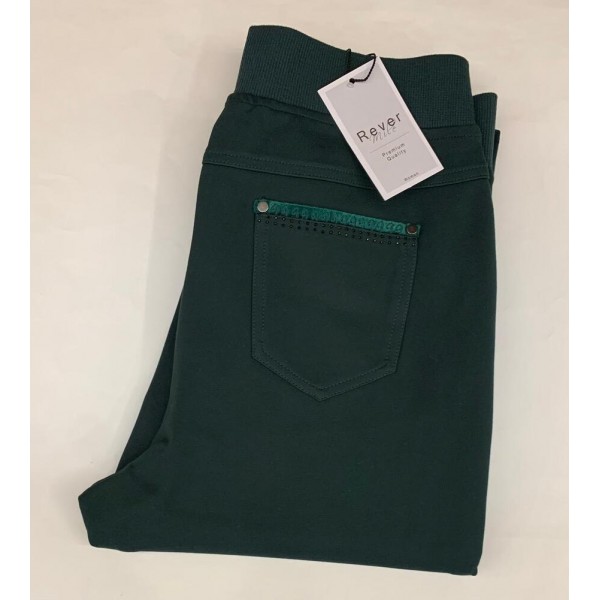 Pantalón 5 bolsillos, elástico, serie Donna, de la firma Rever. Lleva mini-cenefa cosido decorativo en bolsillos traseros combinada a tono.