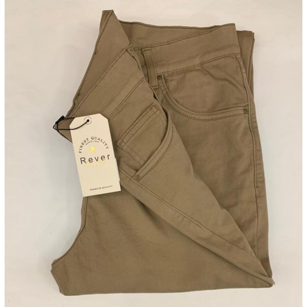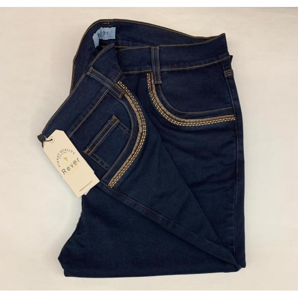 Pantalón elástico, tipo 5 bolsillos, serie Rick, de la firma Rever. Lleva en bolsillos piedras decorativas y vivos/cosidos en tejido aterciopelado...