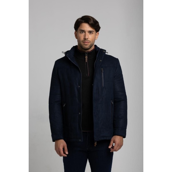 Chaqueta cuello semicisne con cremallera, diseño Dario, de la firma Rever, liso en color marino. Lleva combinado a contraste vivo/interior...