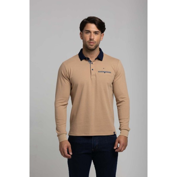 Polo manga larga, liso,... 48,90 € Polo manga larga, liso en tono gris claro o arena, diseño Lago, de la firma Rever. Lleva combinado a contraste cuello/vivo bolsillo oculto/...