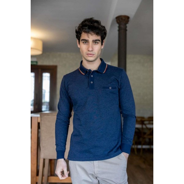 Polo manga larga de la... 48,95 € Polo manga larga de la firma Gilbert Teckel, falso liso vigoré en color azul marino con finas cenefas en vivo cuello en grana/tostado. Lleva...