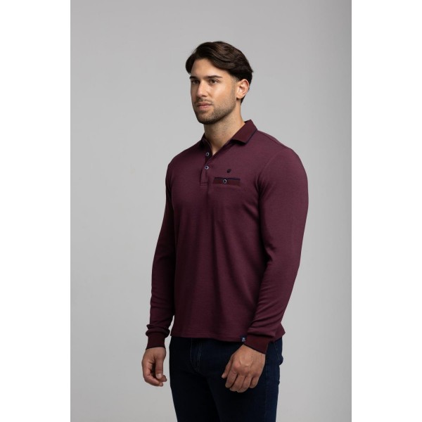Polo liso manga larga de G54 59,95 € Polo caballero liso de manga larga en color vino o azul , con logo en bolsillo con botón, de la firma G54. LLeva combinado a contraste tapeta,...
