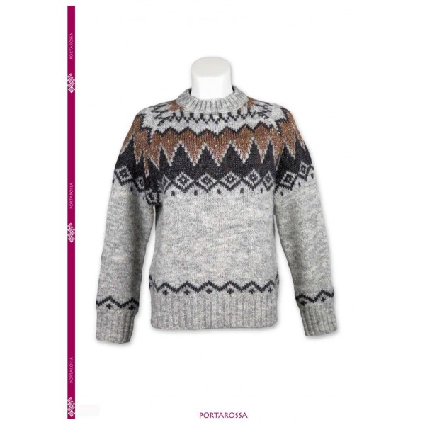 Jsersey mujer juvenil, de... 79,95 € Jersey mujer juvenil, manga larga, cuello redondo, de la firma Portarossa, estampado azteca en tonos azul y tostado, sobre fondo gris perla. Lleva...