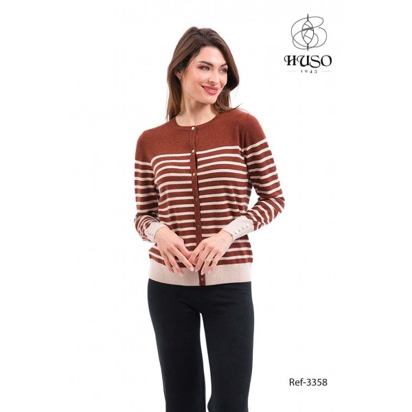 Chaqueta punto juvenil,... 62,00 € Chaqueta jiuvenil cierre por botones, cuello caja, de la firma Huso. Fondo azul marino con rayas combinadas a contraste en azul electrico o marrón...