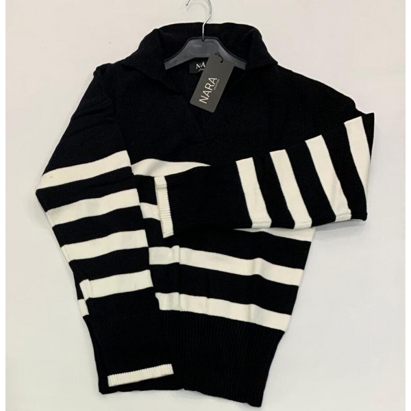 Jersey cuello solapa rayas,... 48,90 € Jersey cuello pico con solapa de rayas en color negro y blanco roto, de la firma Nara