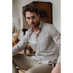 Camisa manga larga Carlos Cordoba, regular fit, cuadros en tonos teja, verde botella, azul marino y beige. Lleva logo en bolsillo combinado a contraste.