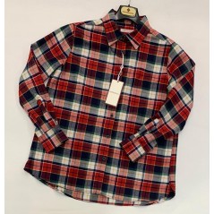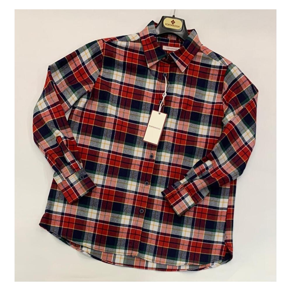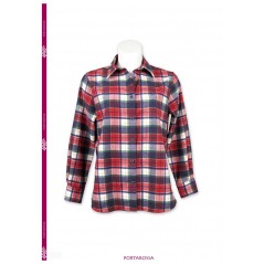 Camisa juvenil mujer manga larga, viella, cuadros en tonos rojo, verde botella, azul marino, msotaza y blanco roto, de la firma Portarossa