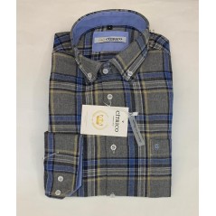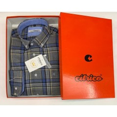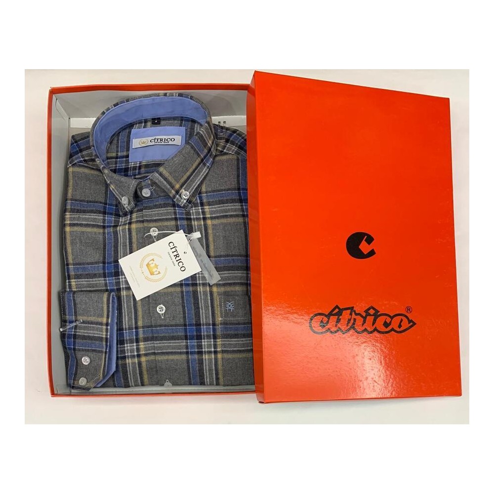 Camisa caballero, manga larga cuadros viella en tono gris/azul/camel/blanco roto, de la firma Citrico. Lleva interior puño/cuello, cosidos botones y logo combinado a tono en azul celeste. Con bolsillo