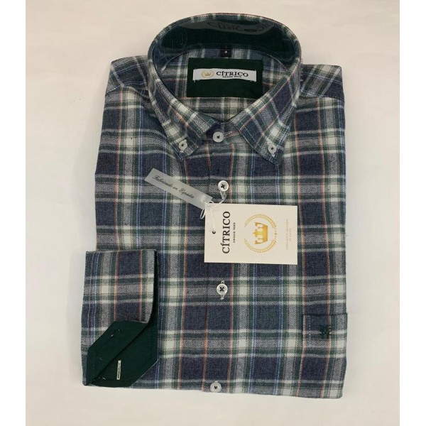Camisa caballero, manga larga cuadros viella en tono verde botella/teja/gris/azul/arena, de la firma Citrico. Lleva interior puño/cuello, cosidos botones y logo combinado a tono en verde botella. Con bolsillo