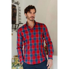 Camisa manga larga Carlos Cordoba, modern fit, cuadros en tonos rojo y azul marino. Lleva botones, ojales y logo a contraste. Sin bolsillo