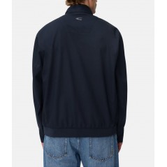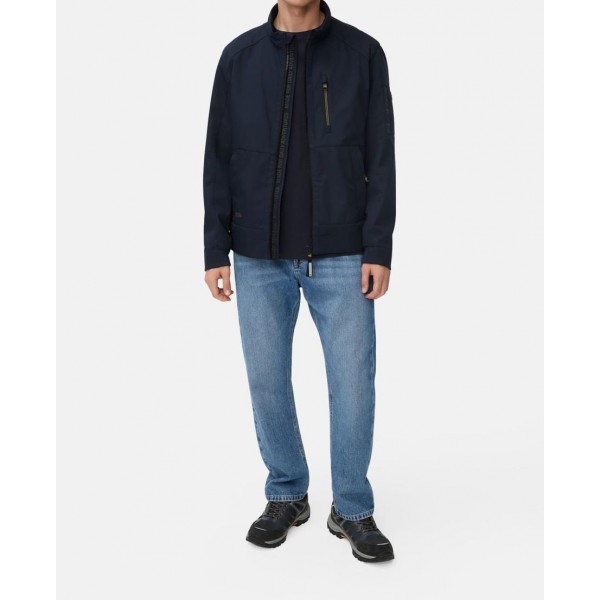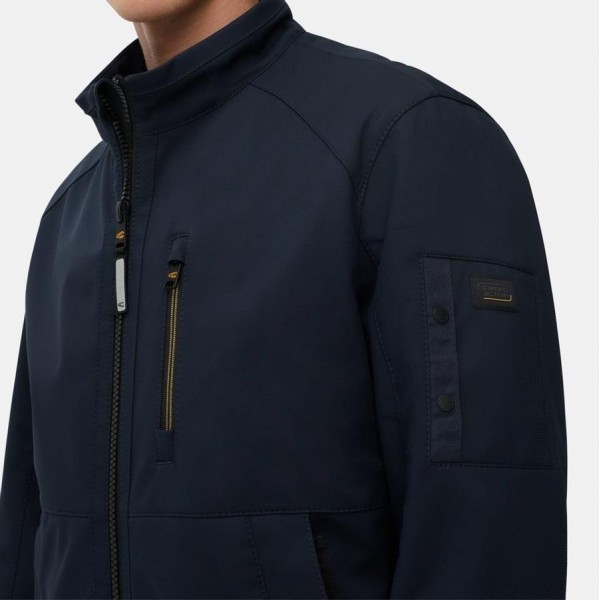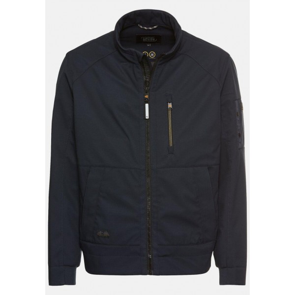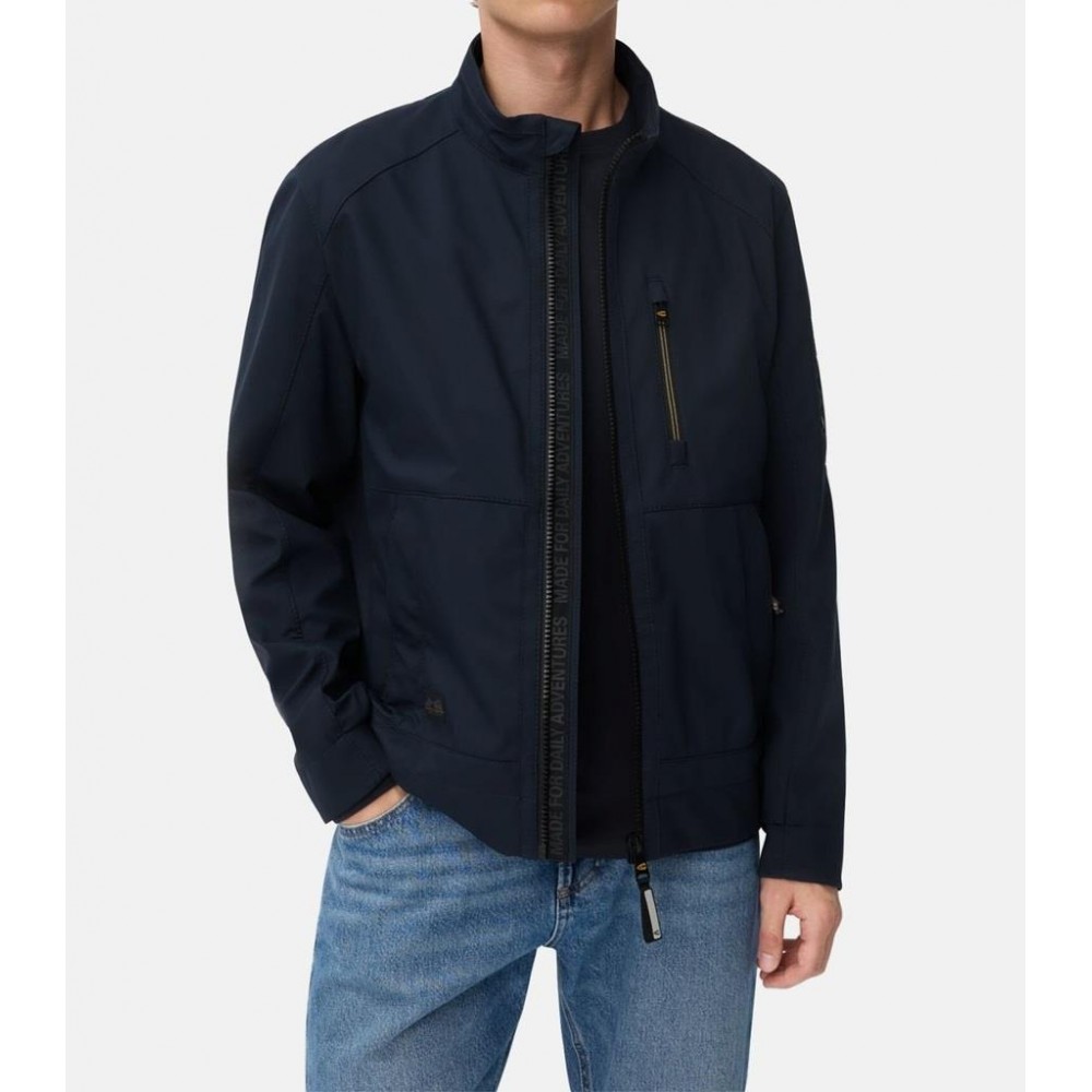 Cazadora forrada en color azul marino, de Camel Active, con logos de Camel Active en manga y parte trasera cuello. Lleva 2 bolsillos laterales y un bolsillo en pecho (cremallera a contraste), con cierre por cremallera. Bolsillo en manga con dos corchetes. Logo en cremallera Made For Daily Adventures. Repelente al agua, resistente a las manchas