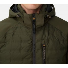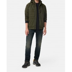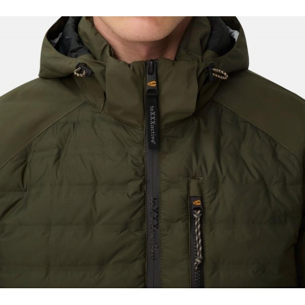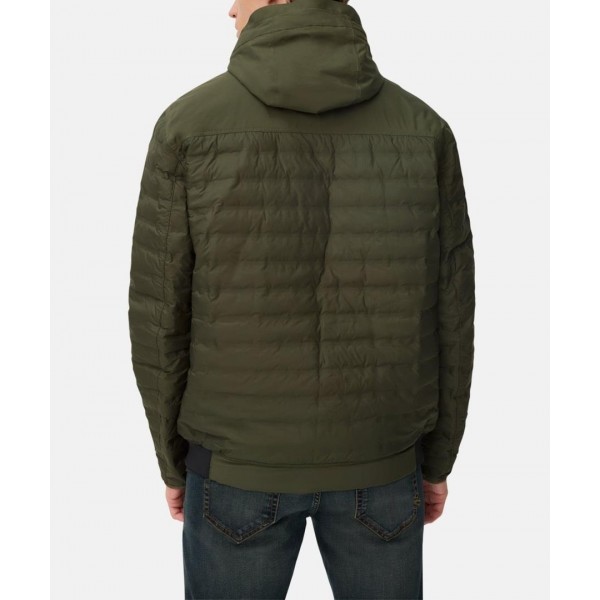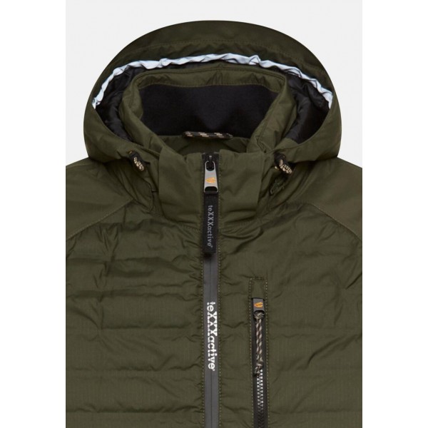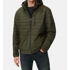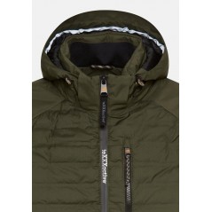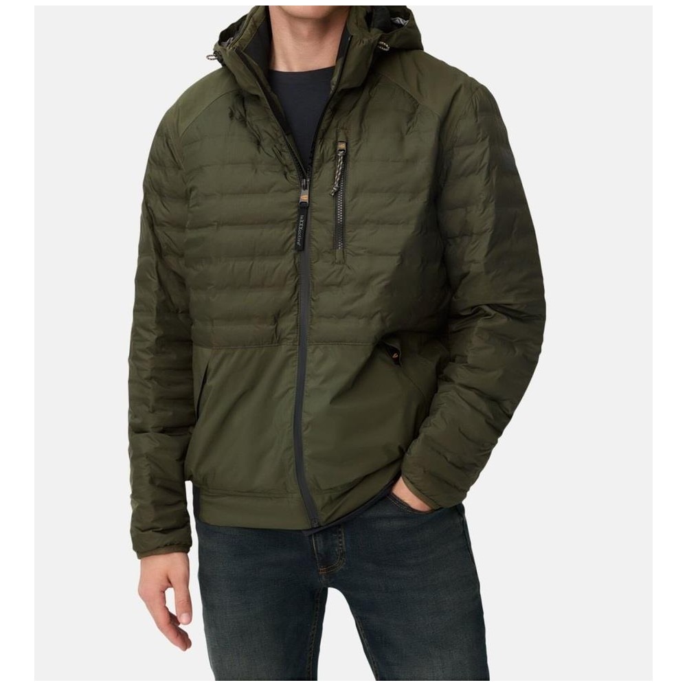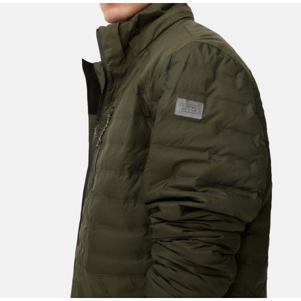 Cazadora acolchada, con capucha desmostable, en verde botella, de Camel Active, con logo de Camel Active en manga, cintura y espalda-cuello. Tiene dos bolsillos laterales con tapeta y otro bolsillo en pecho, con cierre por cremallera todos. Repelente al agua columna de agua 5k, respirable, costuras cintadas, a prueba de viento, libre de PFC y PTFE. Lleva cremallera termosellada con logo grabado a altura pecho