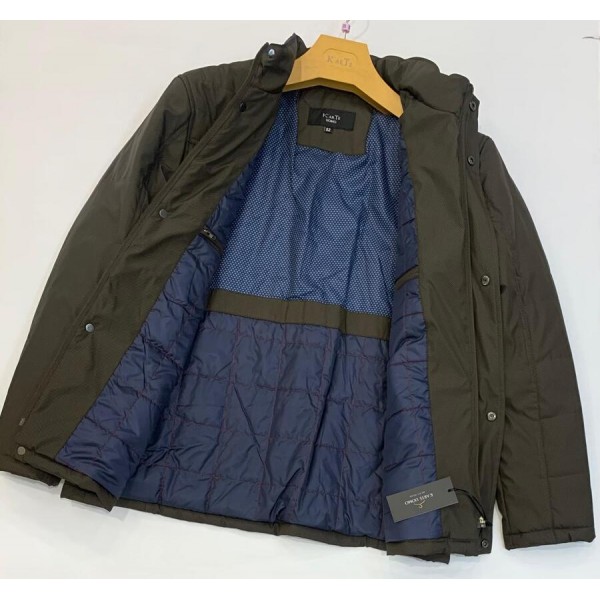 Parka guateada de la firma K´art, falso liso en color marrón, con dos bolsillos, cierre por cremallera y tapeta con corchestes decorativos. Llleva cremallera decorativa en parte exterior cuello y cremallera en bolsillo pecho. Dos bolsillos interiores con cremallera. Los vivos de los bolsillos laterales, cuello y cremallera cuello, van combinados a contraste en azul marino
