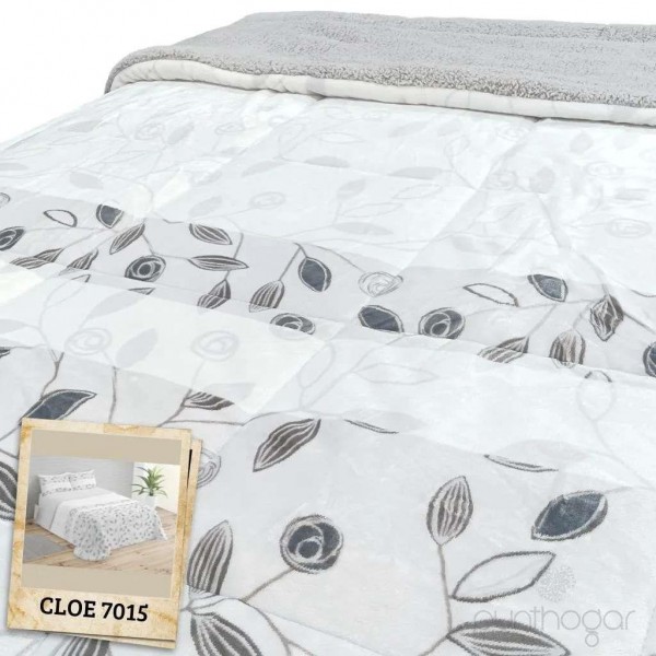 Edredón conforter nacarina - serpha, diseño 7015 Cloe, de la firma Trovador, nueva calidad, extra suave, estampado ramas con hojas en tonos tostado y gris azulado, sobre fondo beige