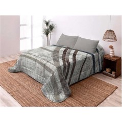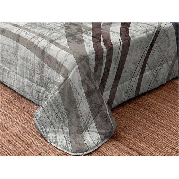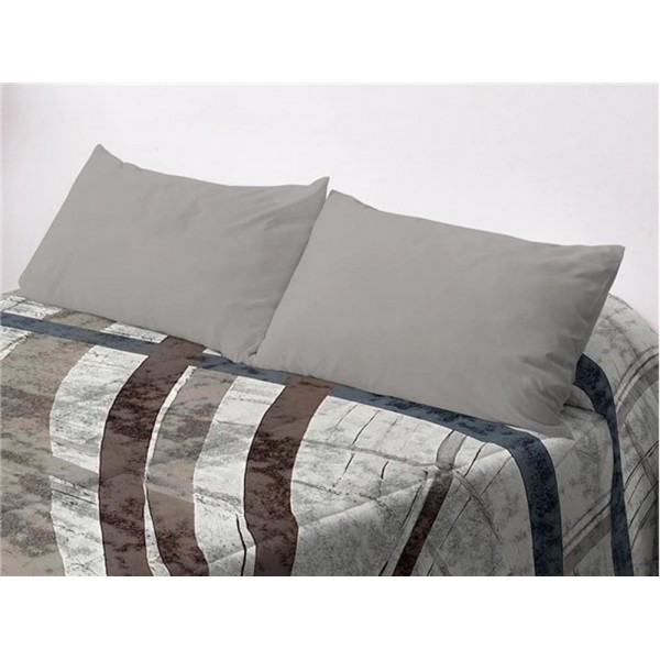 Edredón confort digital de Karamelo, modelo Keijo, impresión digital de fondo difuminado con franjas en tonos gris, blanco roto y marrón. Edición limitada