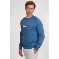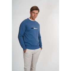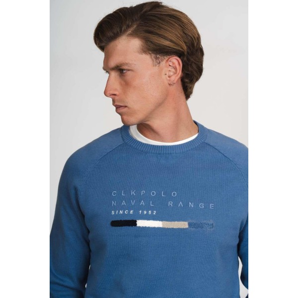Jersey juvenil, cuello redondo, modelo Post, de la firma CLK Polo, con logo pecho relieve CLK Polo Naval Range combinado