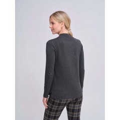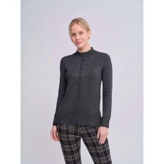 Jersey, cuello semicisne, en color gris marengo, con rombos verticales de piedras decorativas combinadas en tono negro en zona central, de la firma Azay.