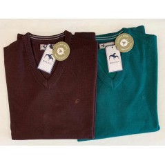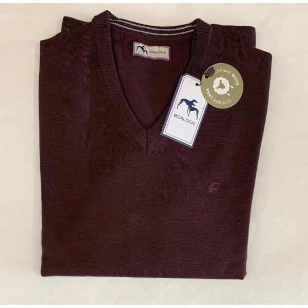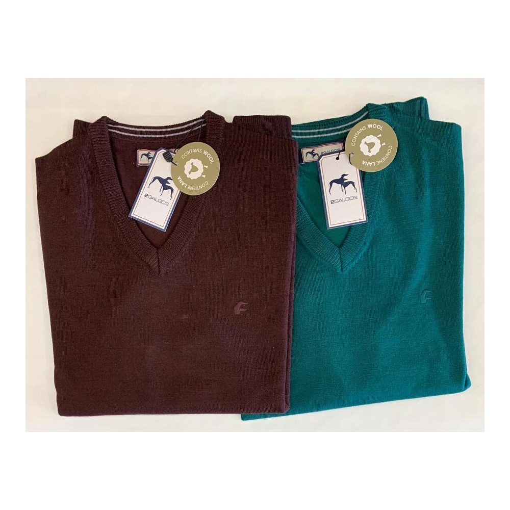 Jersyey juvenil lana, cuello pico, en colores, con logo combinado a tono, de Dos Galgos.