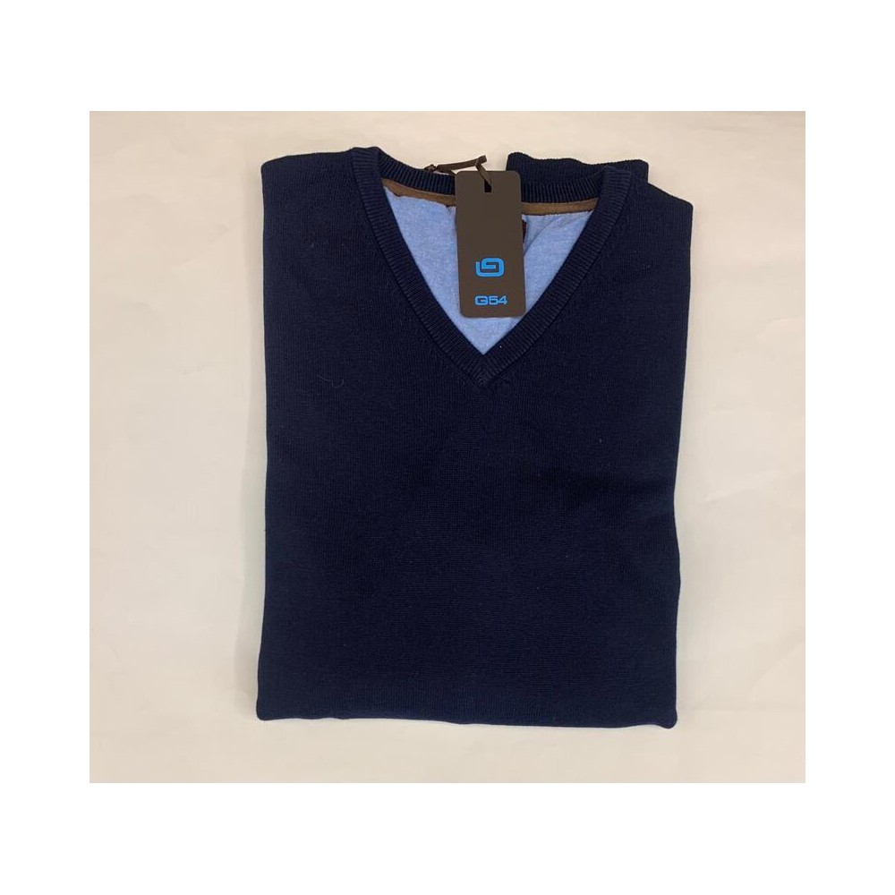 Jersey punto juvenil, cuello pico, liso, de la firma G54. Lleva cosido logo parche G54 en zona cintura