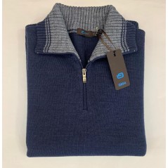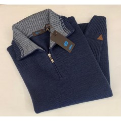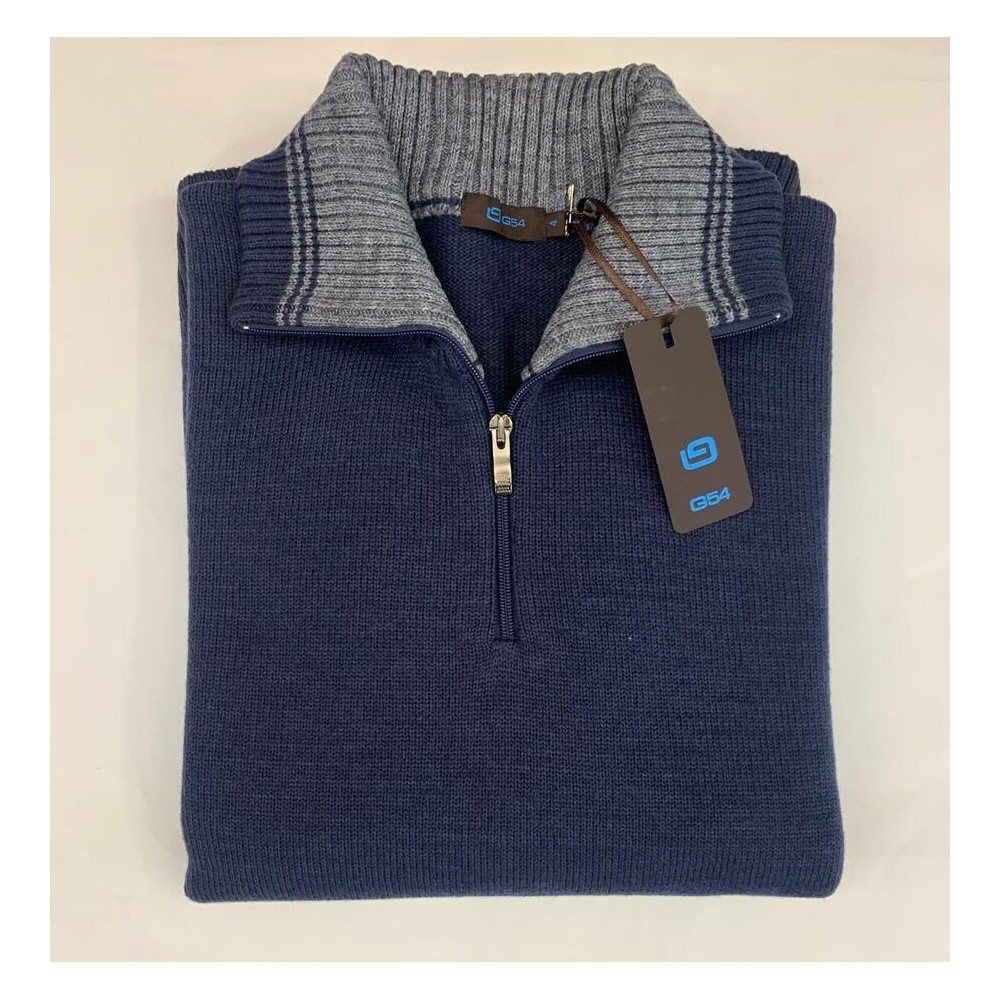 Jersey punto juvenil con cremallera, de la firma G54, en tono verde botella, granate, ocre o gris. El cuello va combinado a contraste en gris con cenefas y vivo en verde, gris con cenefas y vivo en grante, gris con cenefas y vivo en granate, teja con cenefas y vivo en ocre o gris medio con cenefas y vivo en gris, respectivamente