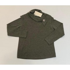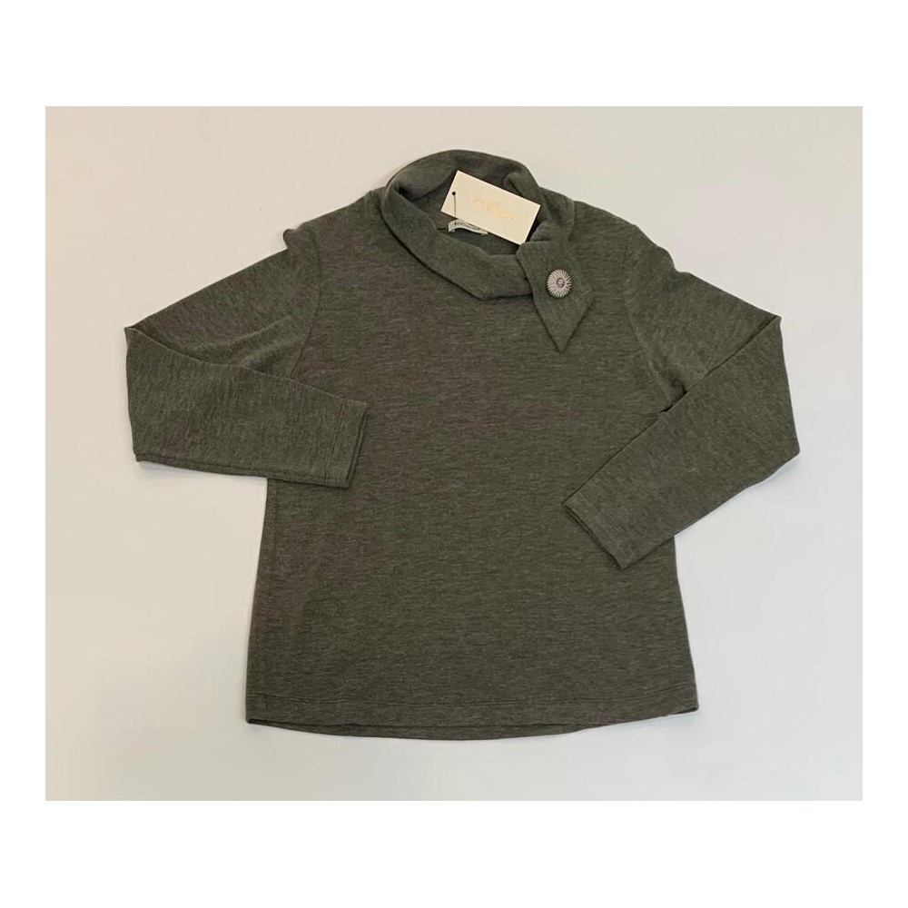 Jersey manga larga, vigoré, diseño Cacao,, de la firma Hortensia, liso, cuello cisne con vuelta y efecto lazada con botón decorativo