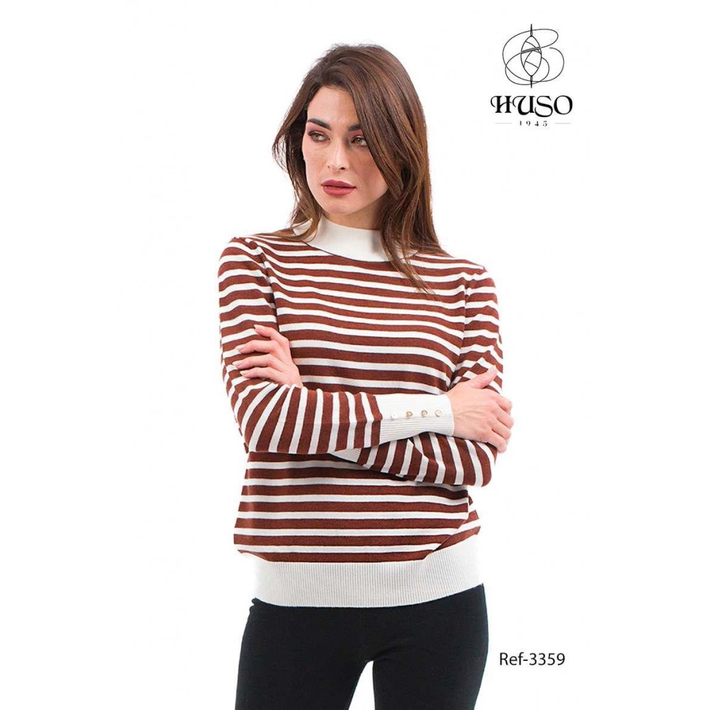 Jersey juvenil, cuello semi cisne, rayas, de la firma Huso