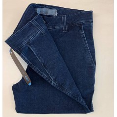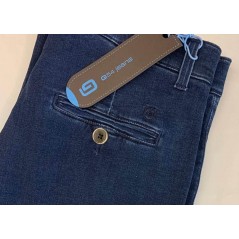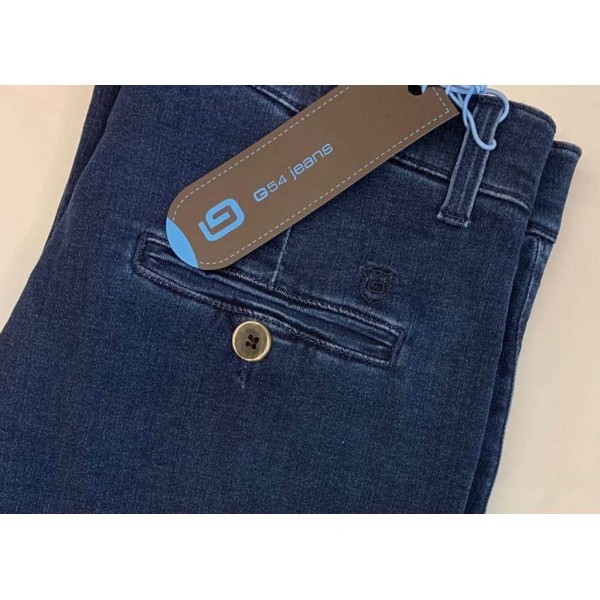 Pantalón vaquero, elástico, con bolsillo chino, de G54. Color azul oscuro, con logo.