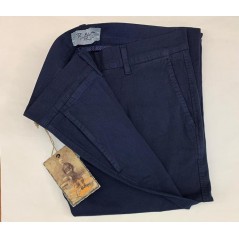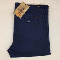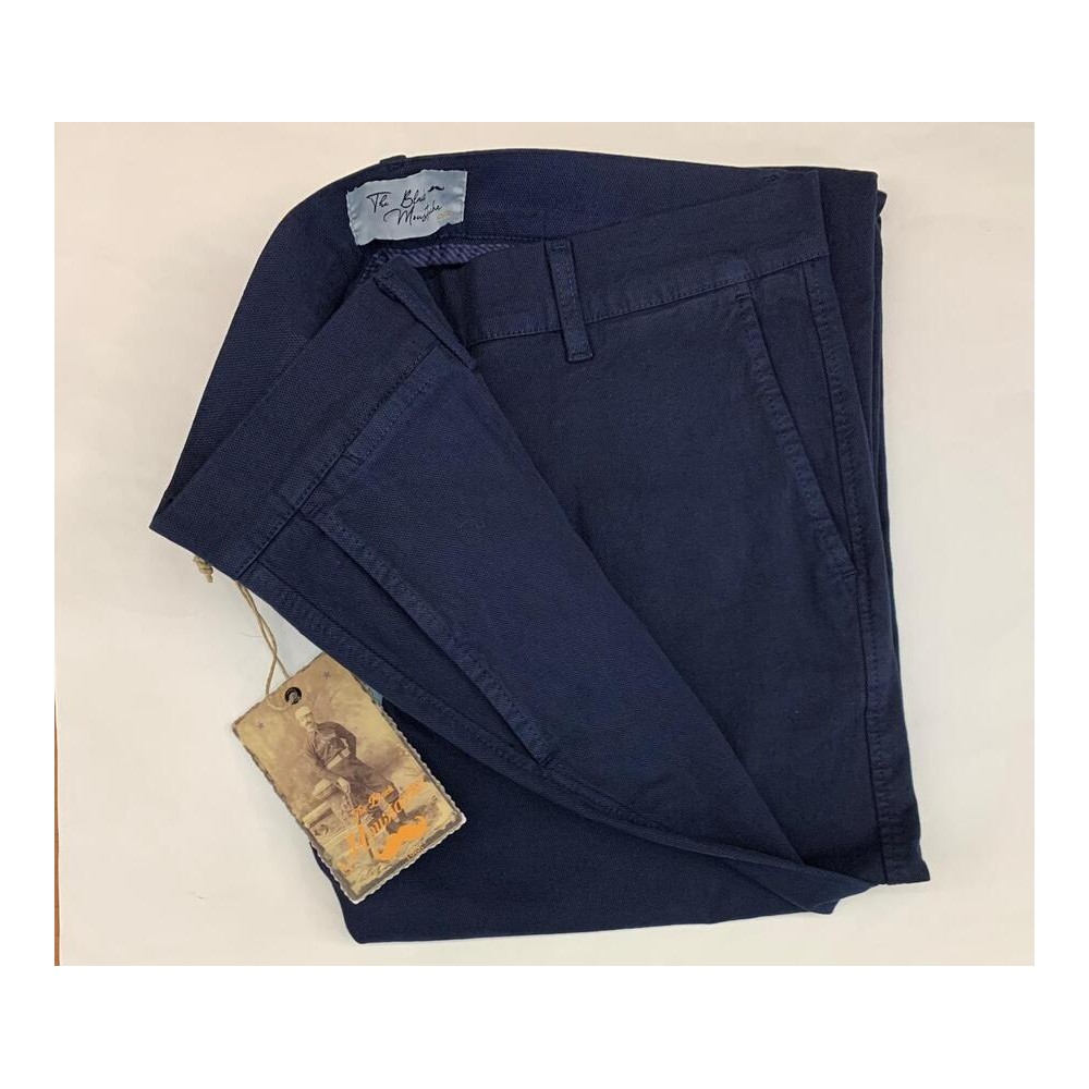 Pantalón chino, falso lliso, Montizon Dixon, Moustache de Inmaculada Bertos, en color gris acero o azul cobalto. Lleva bolsillos traseros con botón y cosidos botones a contraste