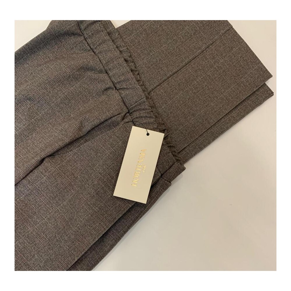 Pantalón señora modelo Ceuta, de la firma Hortensia cuadros en tonos tostado, cereza y marrón. Lleva cintura elástica, 2 bolsillos laterales. Sin cremallera