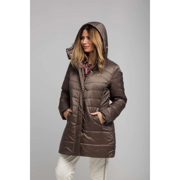 Parka diseño Agua de Boca Boka, guateado fino, liso. Cierre por cremallera y corchestes. Dos bolsillos laterales con cremallera oculta. Lleva capucha desmontable