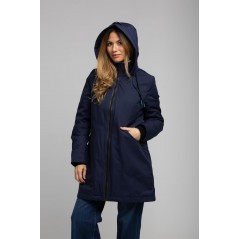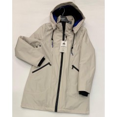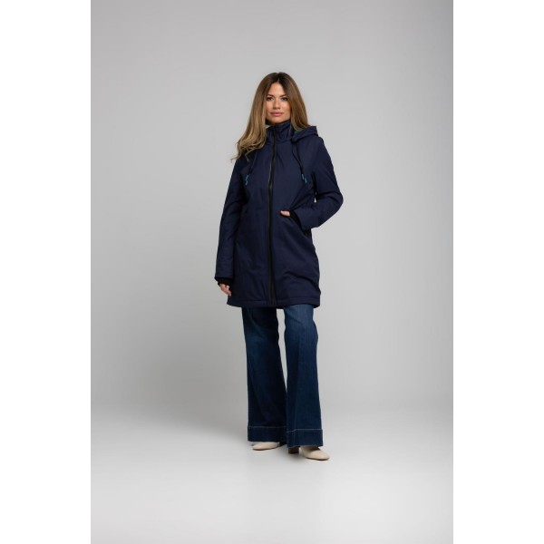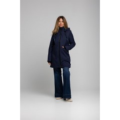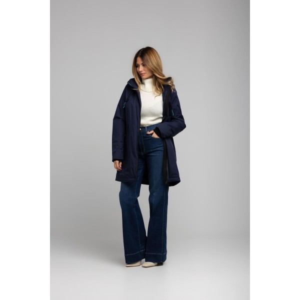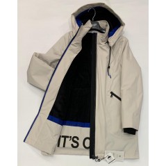 Parka diseño Alpes, cierre por cremallera, forro fino pelo, lisa, en tono negro o crudode la firma Rever. Lleva 2 bolsillos con cierre por cremallera. Cremalleras en negro. Capucha desmontable con tiradores en negro/crudo y remate cinta en azul electrico. 1 bolsillo interior con cremallera