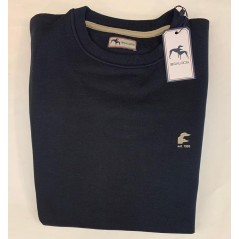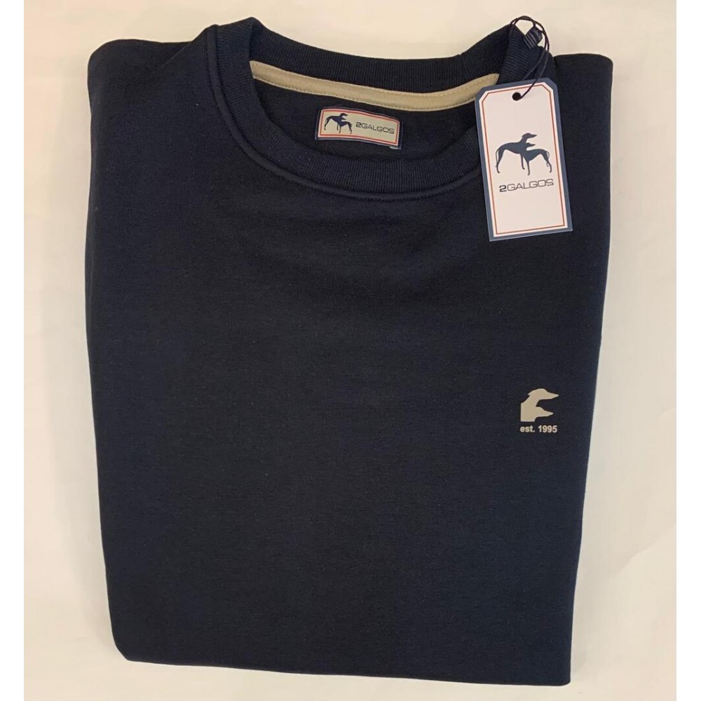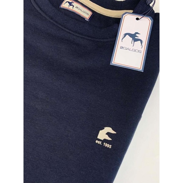 Sudadera sport, cuello redondo, con forro interior, de la firma Dos Galgos. Disponible en color azul marino combinado con logo en gris perla